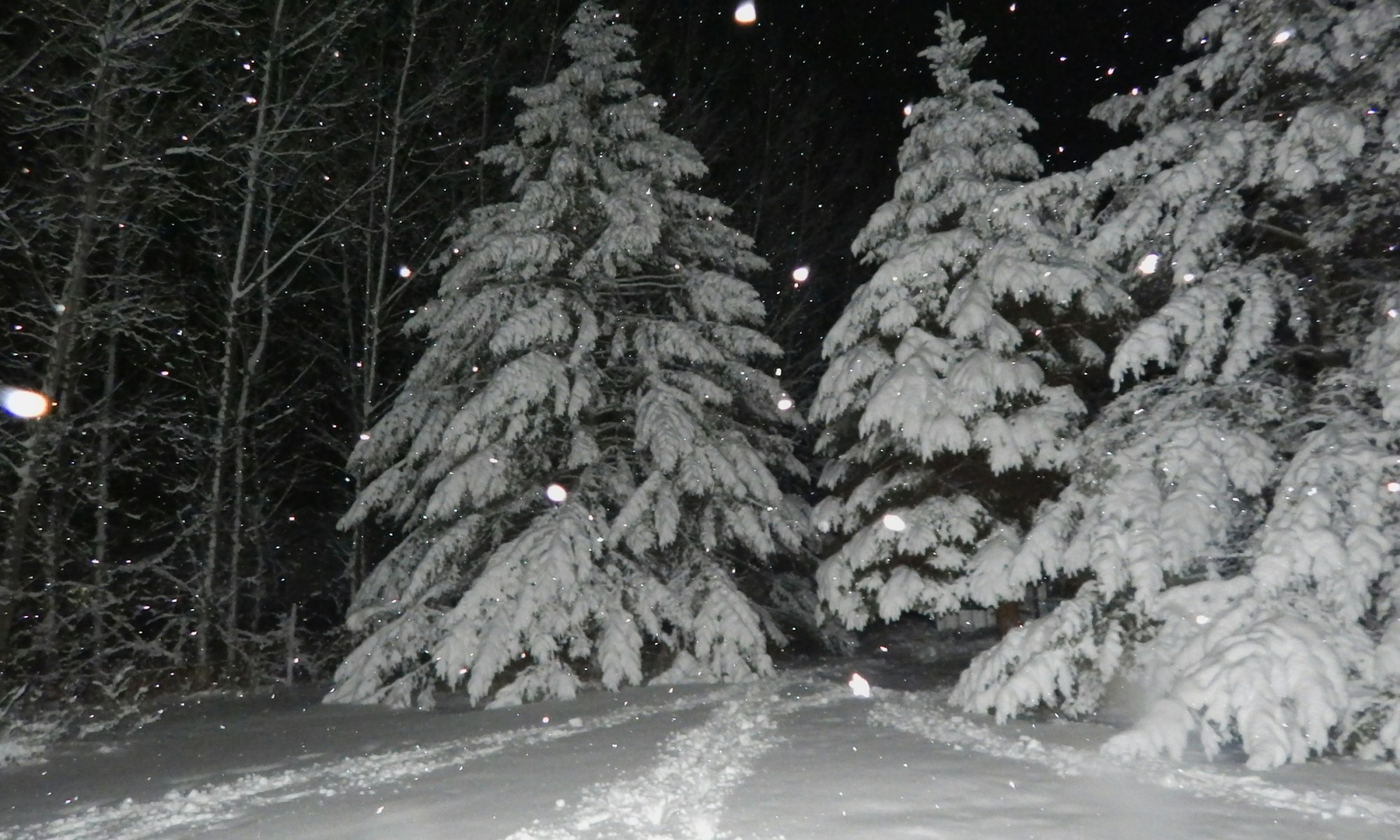 Their bare boughs weighed with snow.