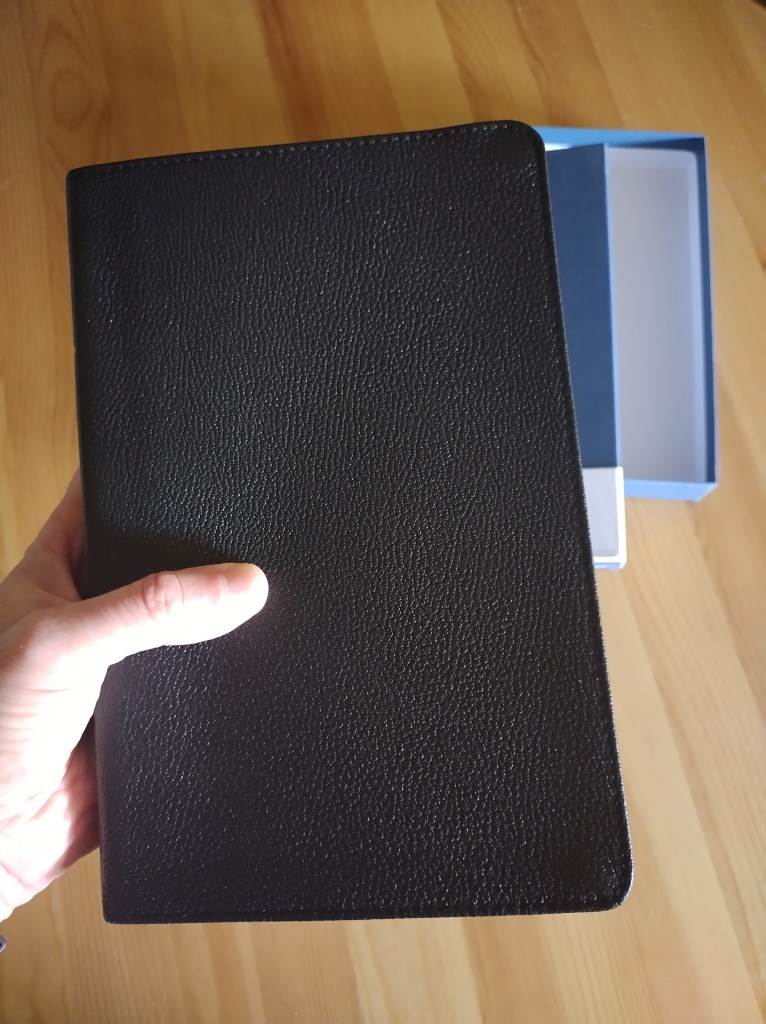 After about a month of daily use, I have to say Iโm very satisfied with it. I bought it as a Bible for everyday reading and study; a sturdy, high-quality copy to be marked up through highlighting, annotating, adding notes on lexical study, etc. You would think that a wide-margin Bible would be more suitable for that specific purpose, but Iโve actually found this smaller format to be ideal, as it makes me focus on the key things, without going into unnecessary digressions and random scribbles – there’s just no space for any of that.
